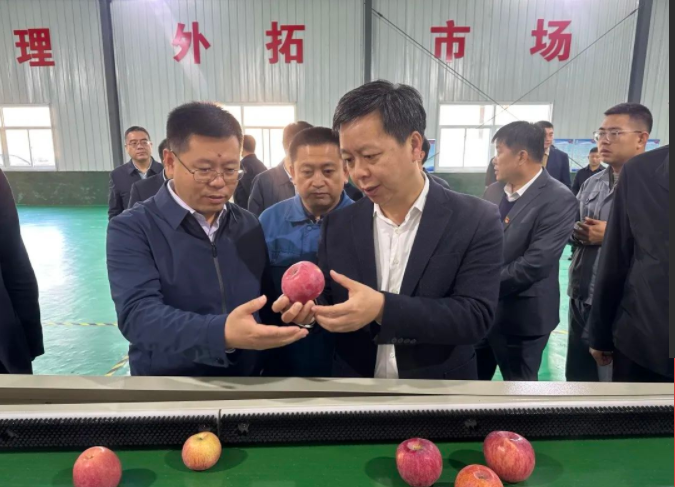 農(nóng)行陜西省分行黨委書記、行長彭祖佑到陜果安塞公司南溝村選果車間調研
