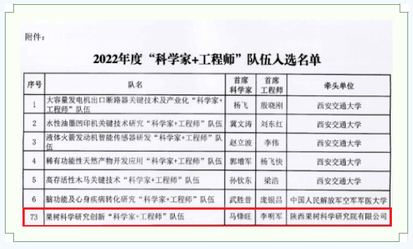 陜西果樹(shù)科學(xué)院專(zhuān)家團(tuán)隊(duì)入選2022年度陜西省“科學(xué)家+工程師”隊(duì)伍