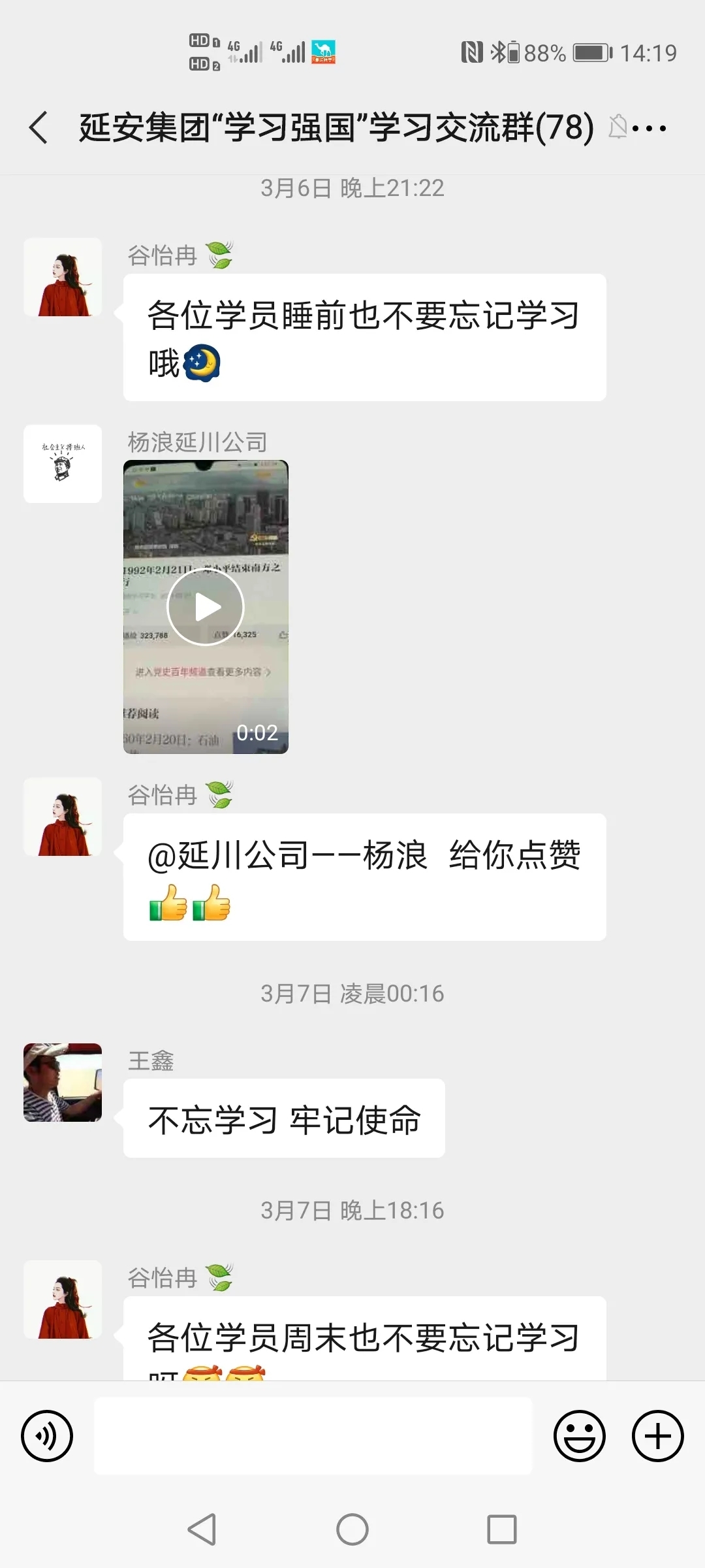 各位學員,今天你的“學習強國”積分達標了嗎?在延安公司“學習強國”學習交流群,大家每日都能按時收到這樣的溫馨提示,確?;钴S度、參學率達到100%,形成了你追我趕的濃厚學習氛圍。自“學習強國”平臺上線以來,延安公司把“學習強國”學習平臺作為提......