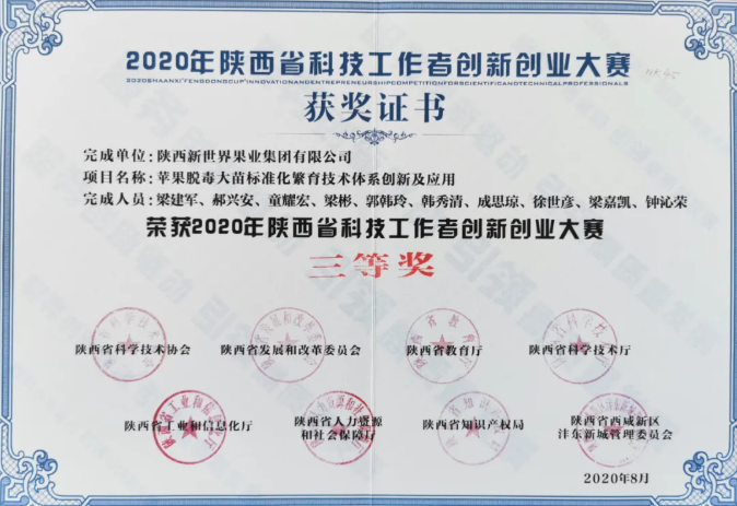陜果種苗公司榮獲“2020年陜西省科技工作者創(chuàng)新創(chuàng)業(yè)大賽”三等獎