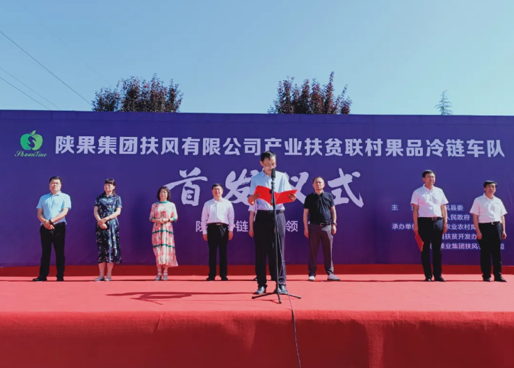 陜果集團(tuán)產(chǎn)業(yè)扶貧聯(lián)村果品冷鏈車隊(duì)在扶風(fēng)舉行首發(fā)儀式