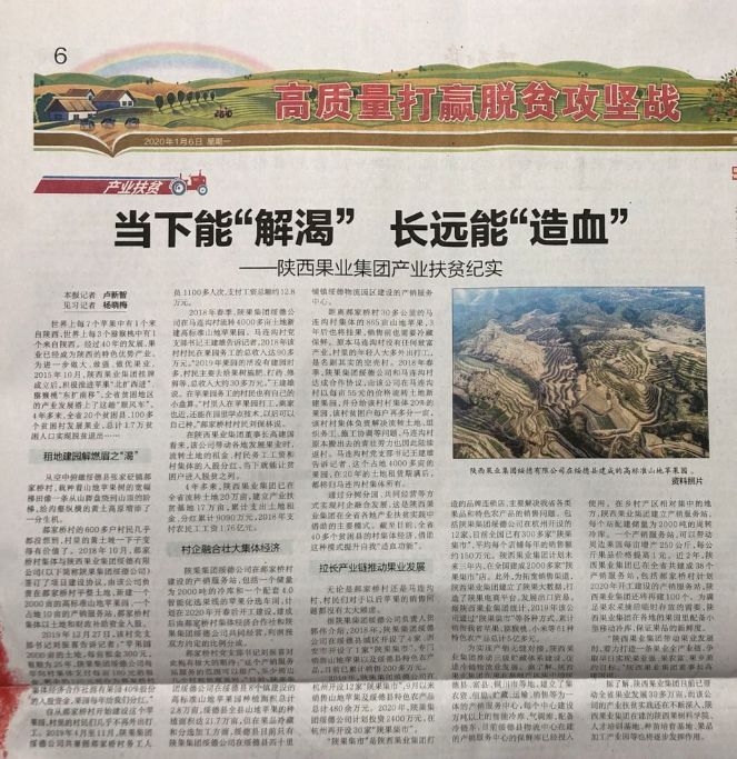 華商報(bào):新時(shí)代·新?lián)?dāng) 改革開(kāi)放四十周年·省屬?lài)?guó)企發(fā)展巡禮系列報(bào)道 陜果集團(tuán):大力發(fā)展現(xiàn)代果業(yè) 精準(zhǔn)助力脫貧攻堅(jiān)