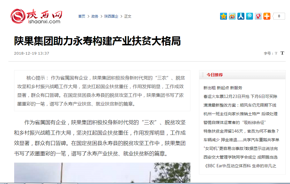 陜西網(wǎng):陜果集團助力永壽構(gòu)建產(chǎn)業(yè)扶貧大格局